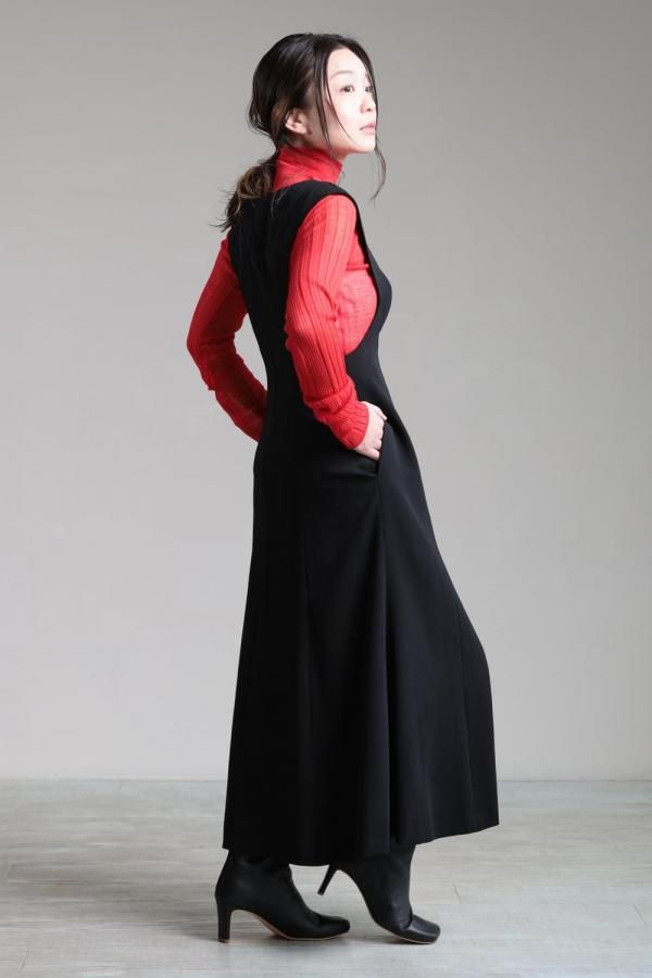 シャープな質感と適度な艶が上品な印象のウールベネシャンドレス。
