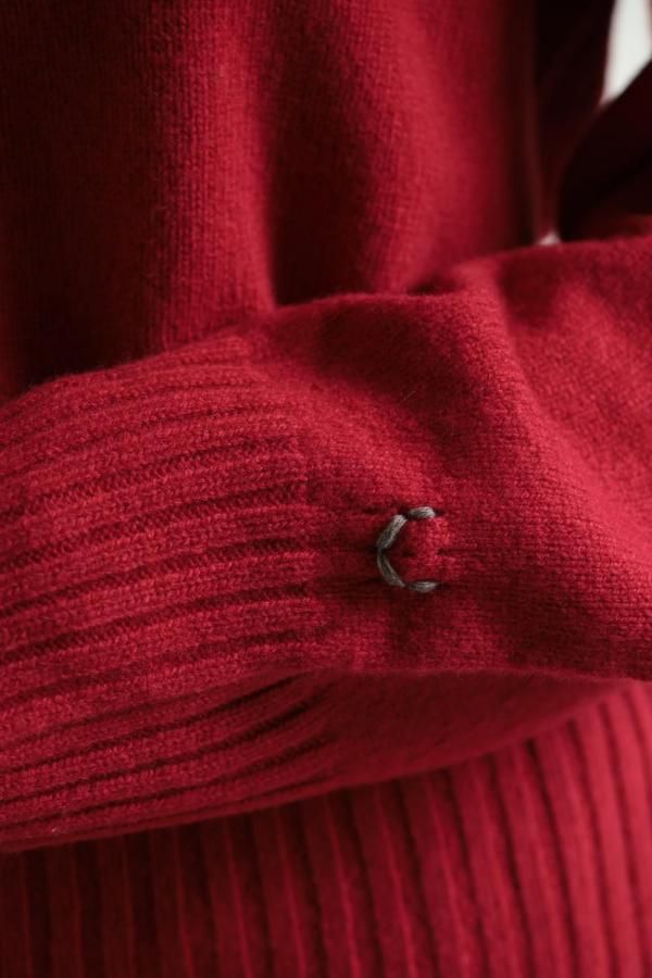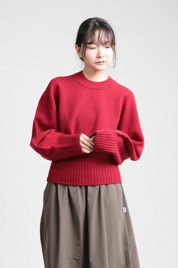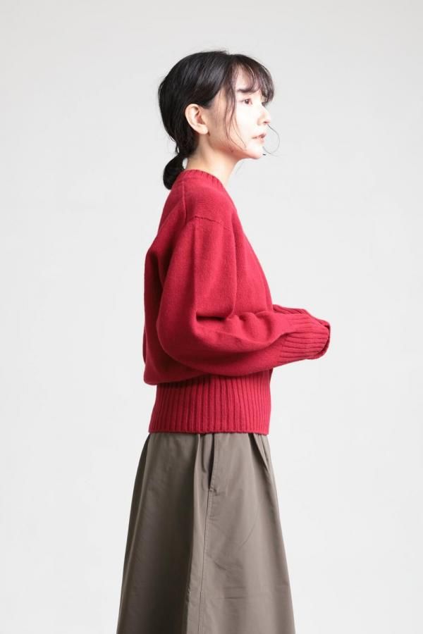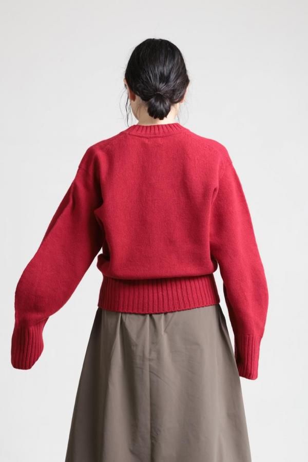 unfil(アンフィル) fine lambs wool crew-neck P/O red