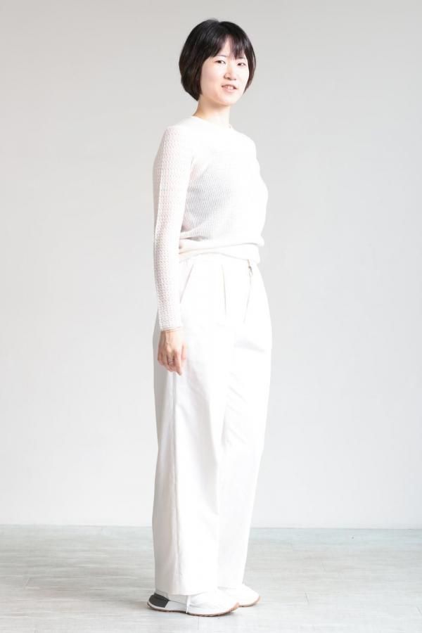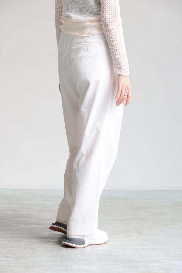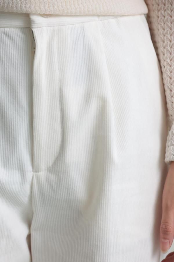 MACPHEE(マカフィ) コットンコーデュロイ タックストレートパンツ ホワイト