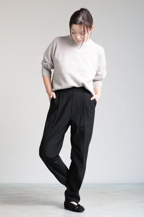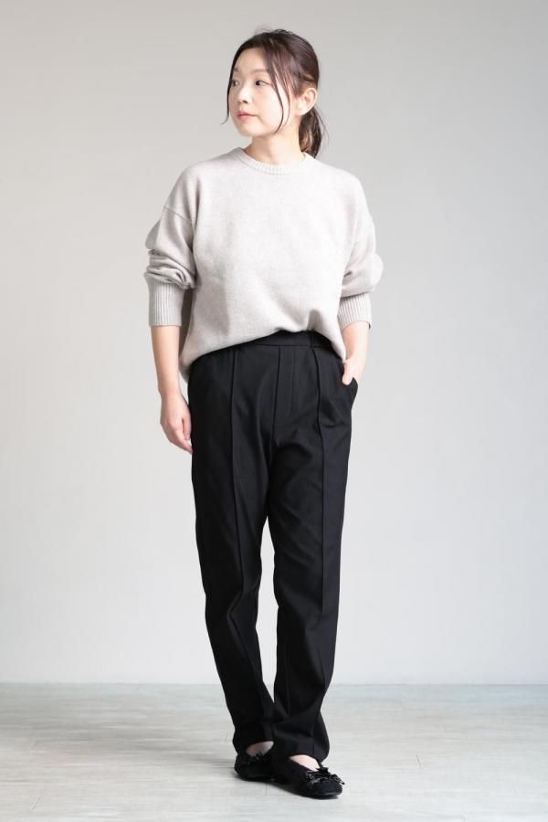 ウエストゴムのイージー仕様に、太過ぎず、細過ぎない程よいシルエット。