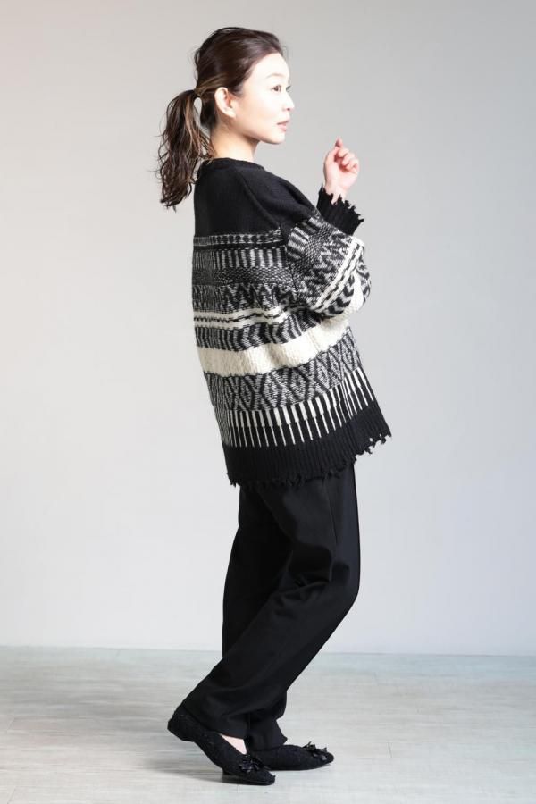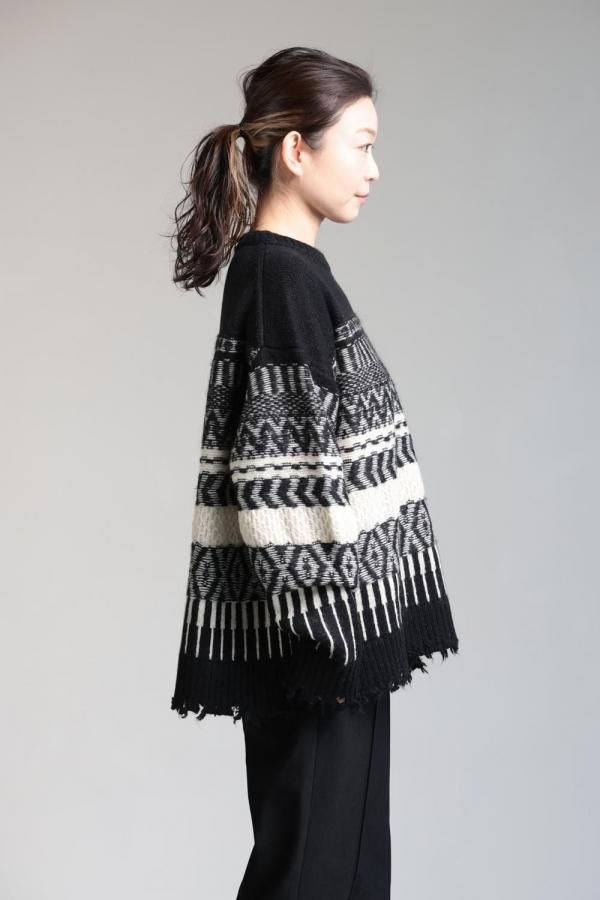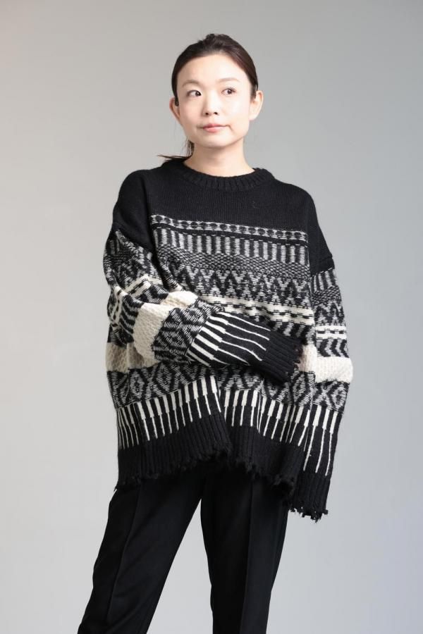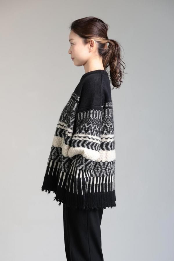 SIWALY fluid(シワリーフルイド) 【UNISEX】Jacquard Knit Pull-over black