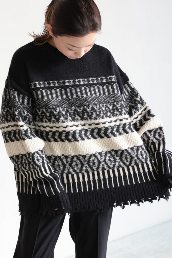 SIWALY fluid(シワリーフルイド) 【UNISEX】Jacquard Knit Pull-over