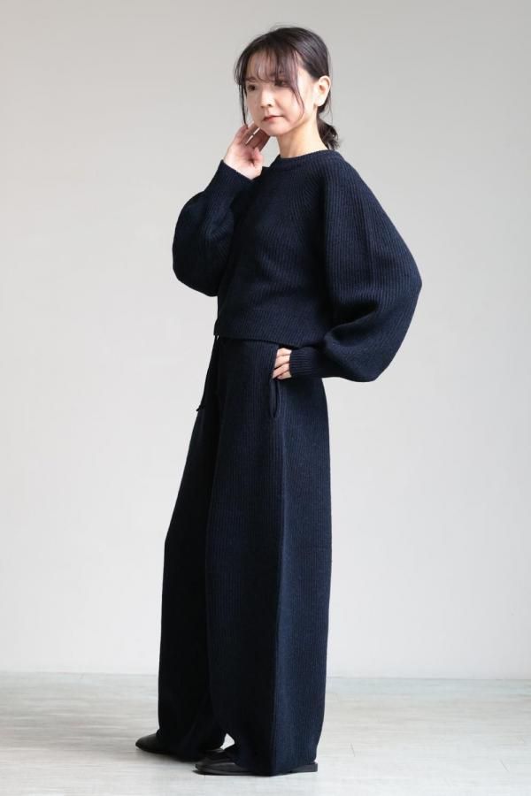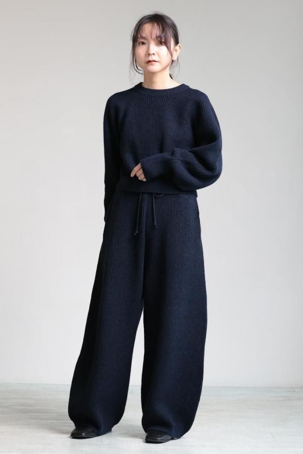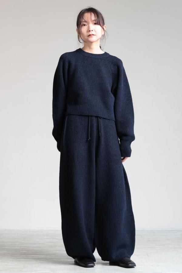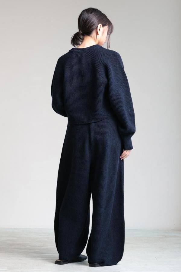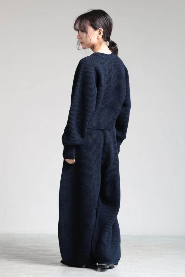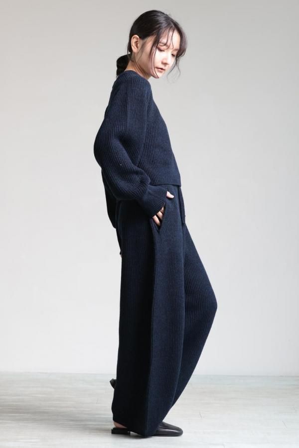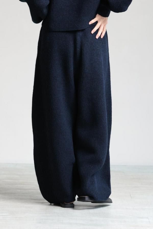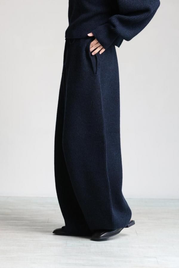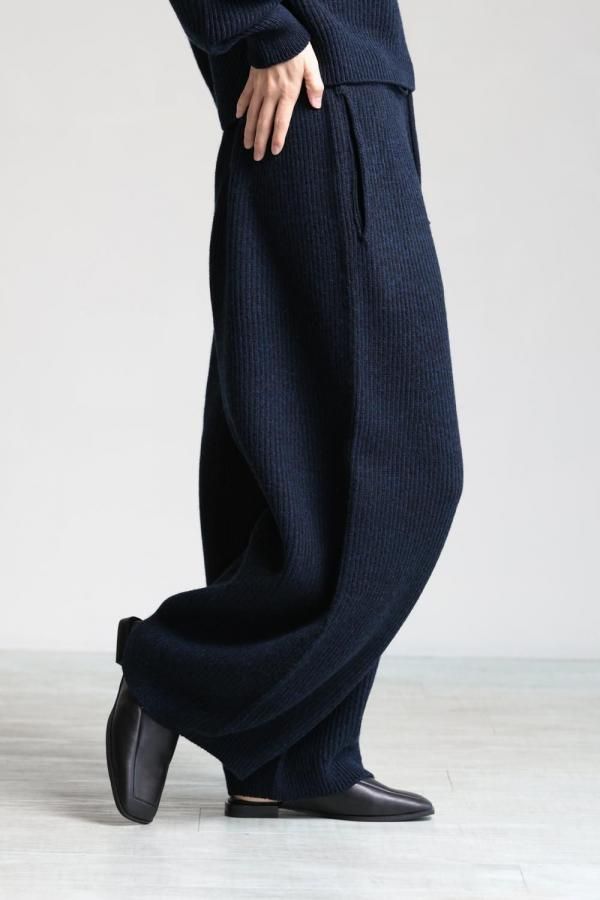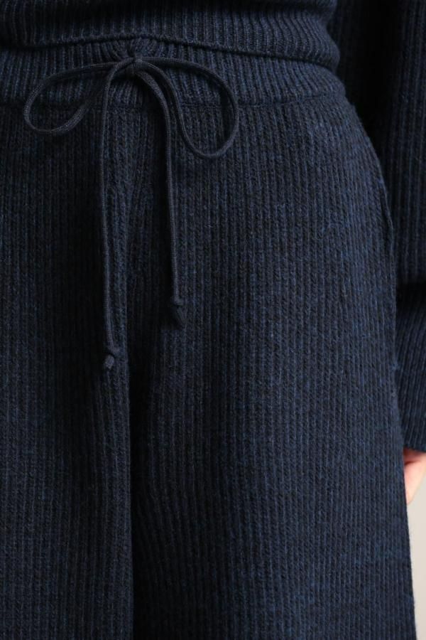 unfil(アンフィル) woolen cotton & ex.fine lambs wool ribbed-knit wide pants black navy