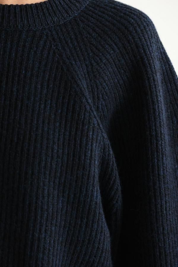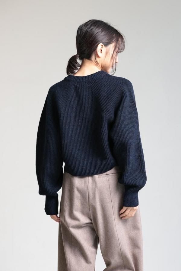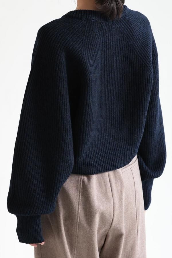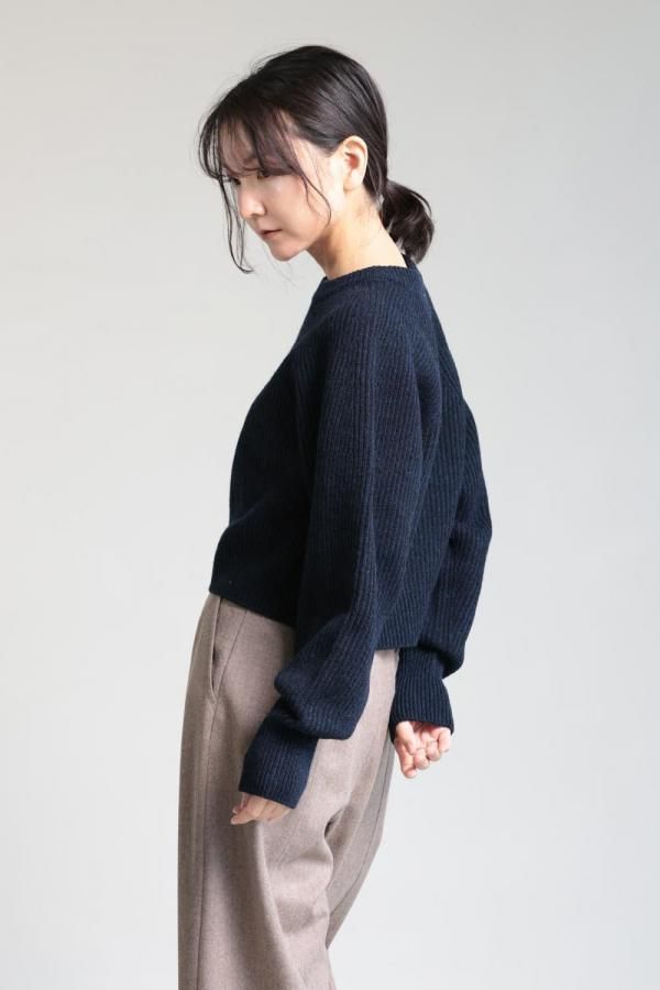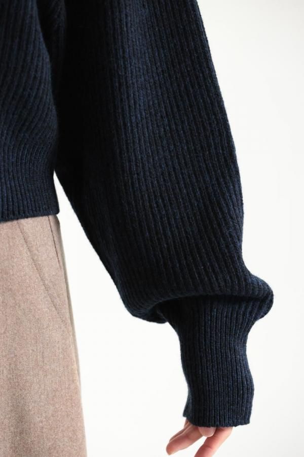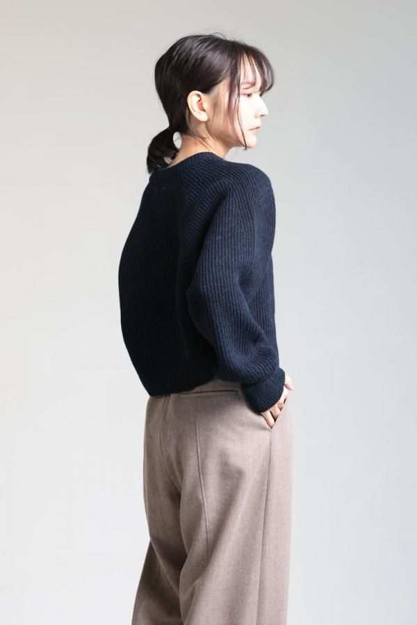unfil(アンフィル) woolen cotton & ex.fine lambs wool ribbed-knit P/O black navy