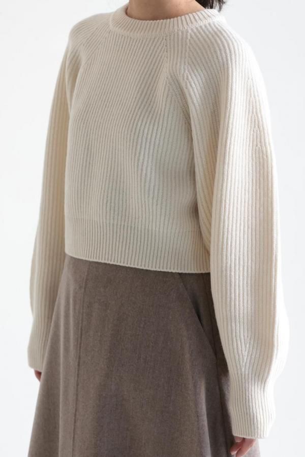 unfil(アンフィル) woolen cotton & ex.fine lambs wool ribbed-knit P/O off white