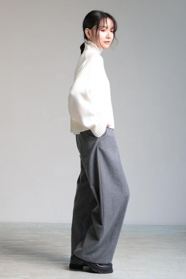 フォルムを引き立てるしっかりとしたミドルゲージで編み立てています。