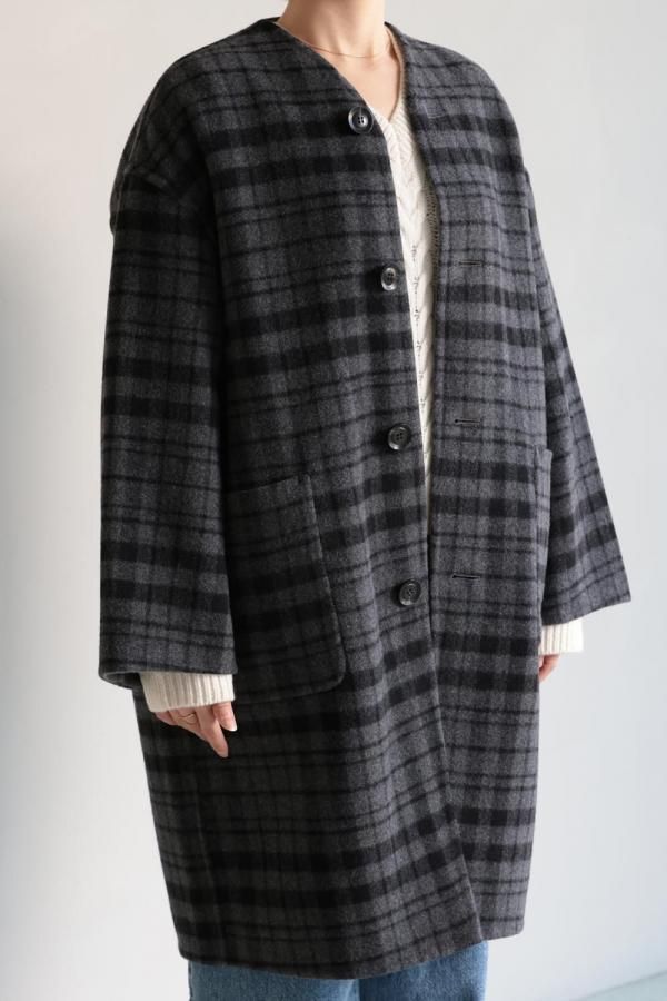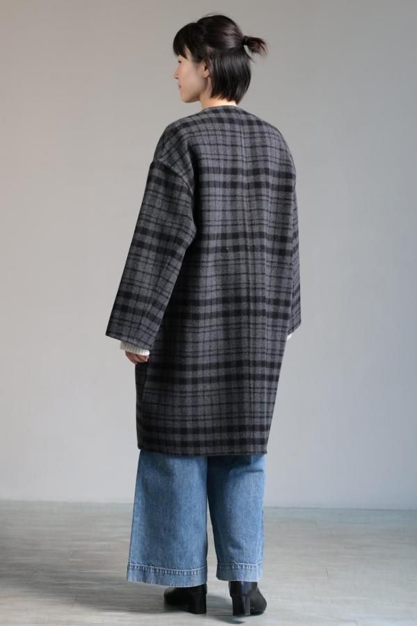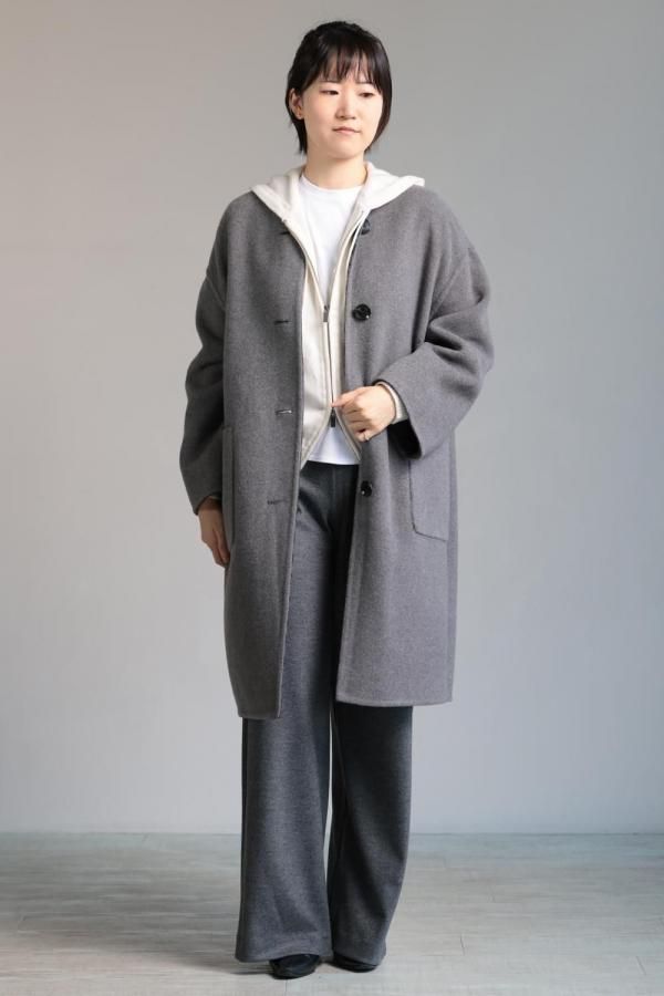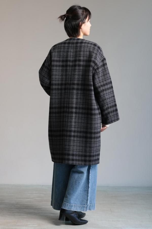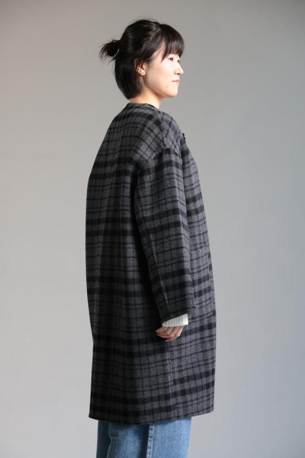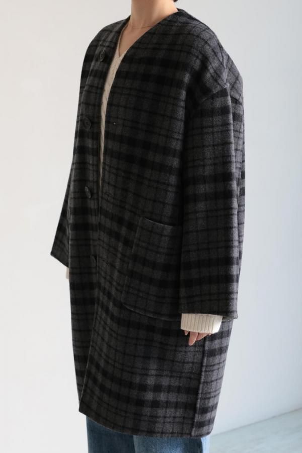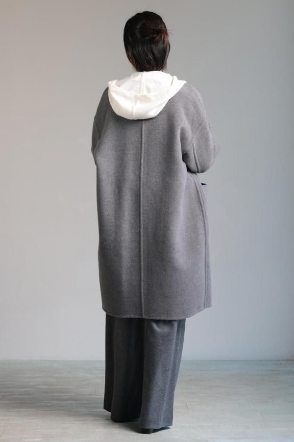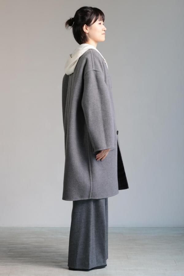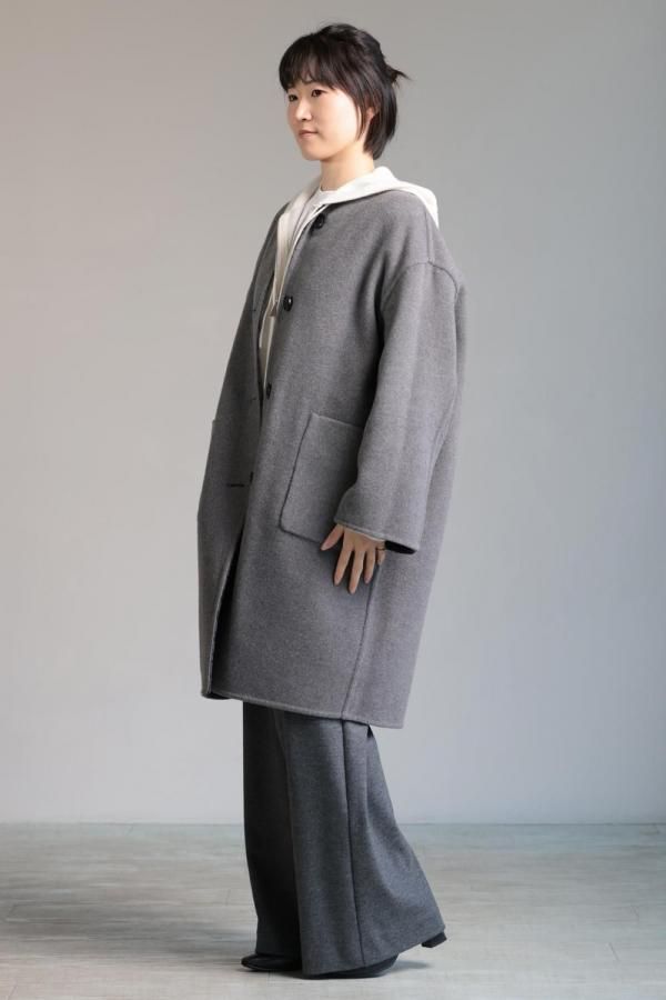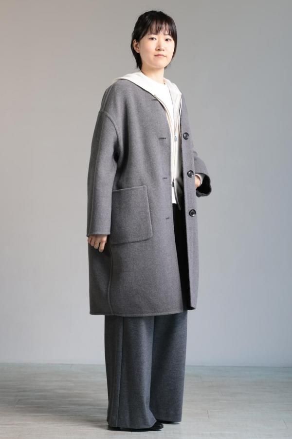 1点1点、丁寧に縫製されたノーカラーのリバーコート。
