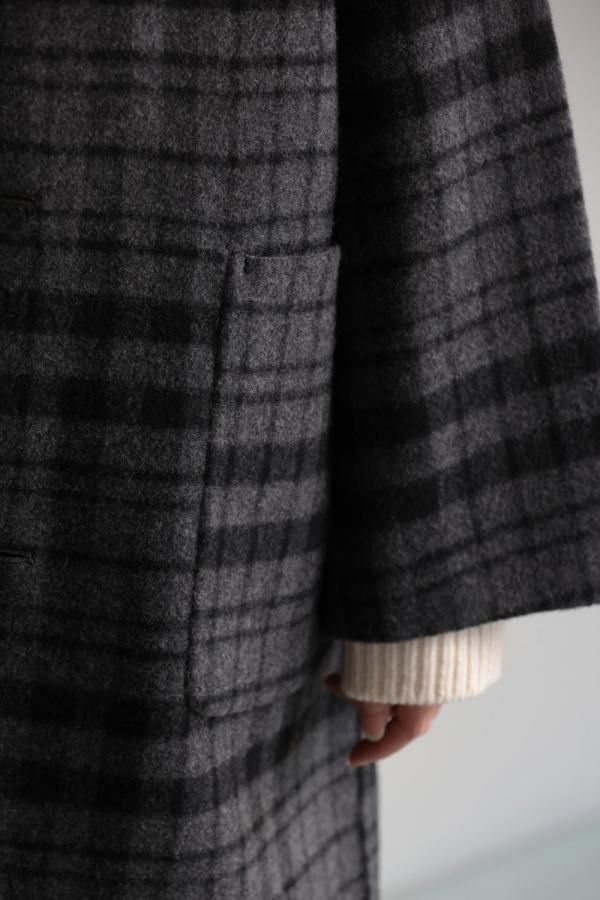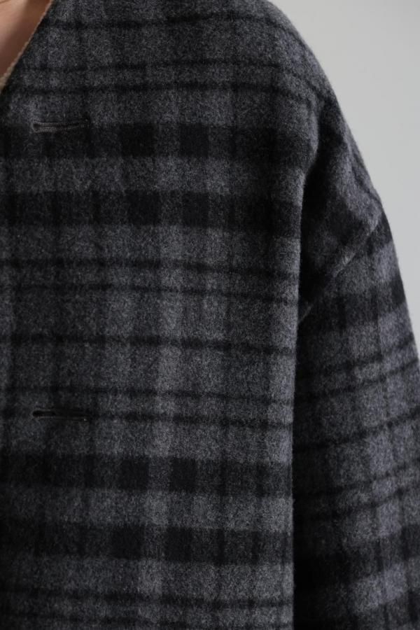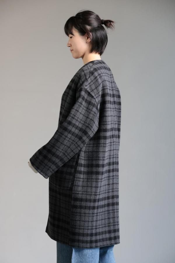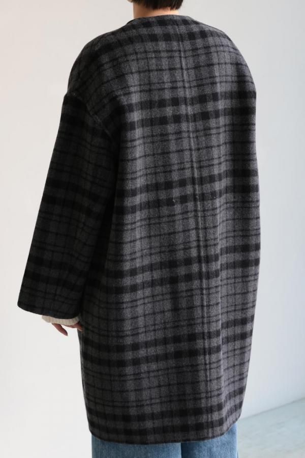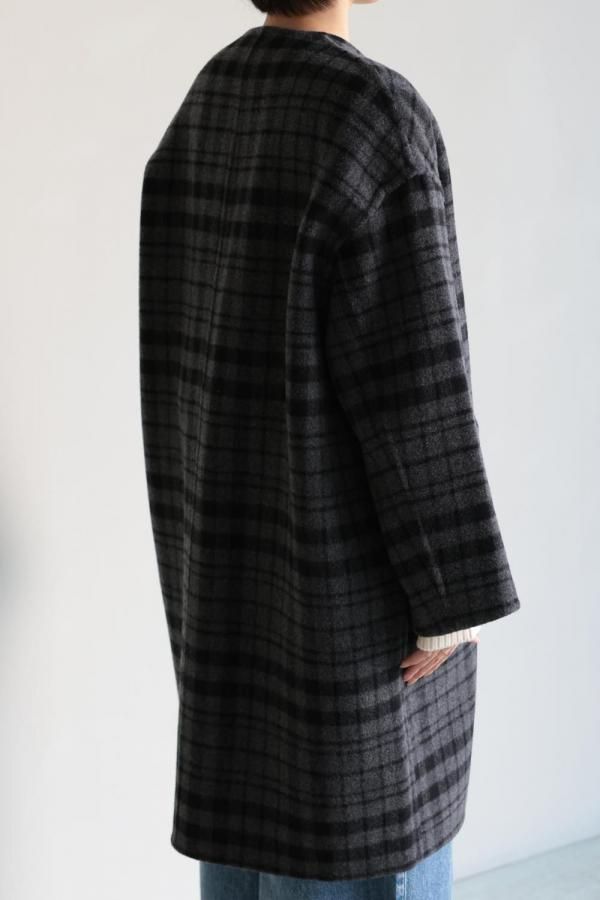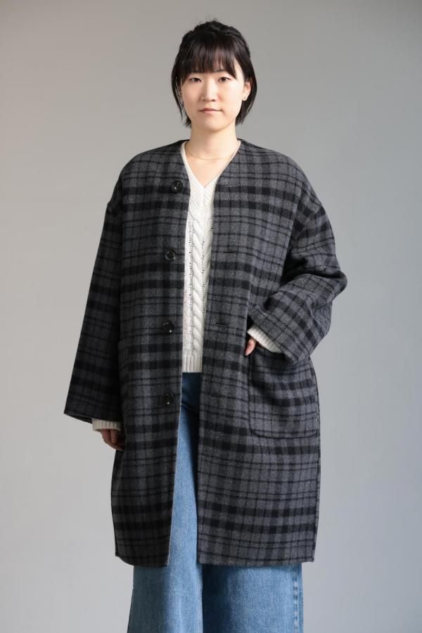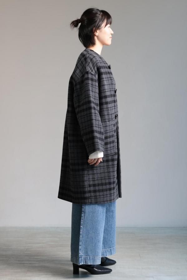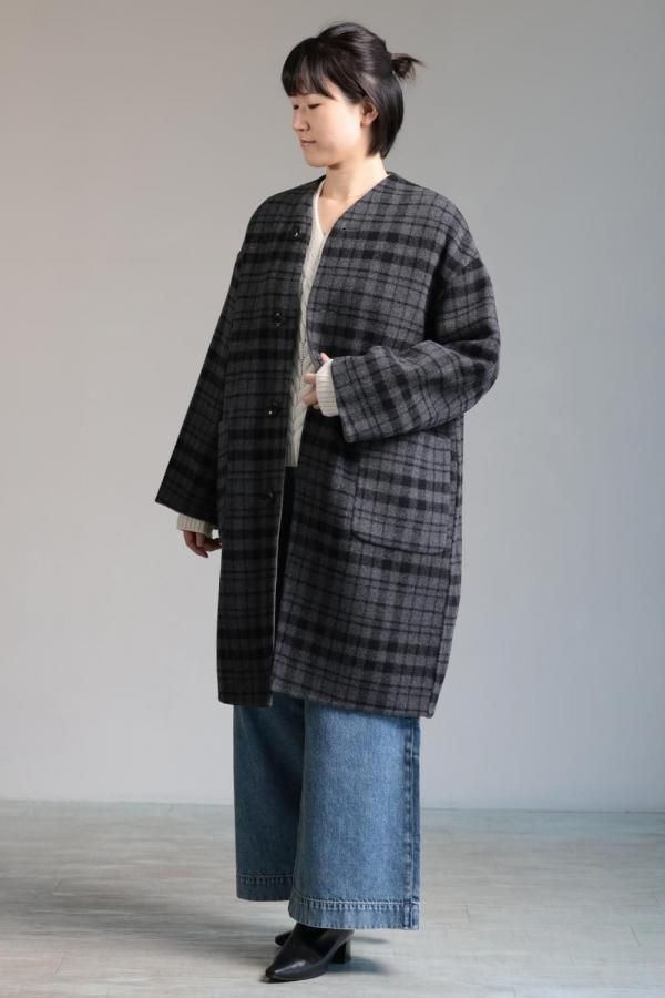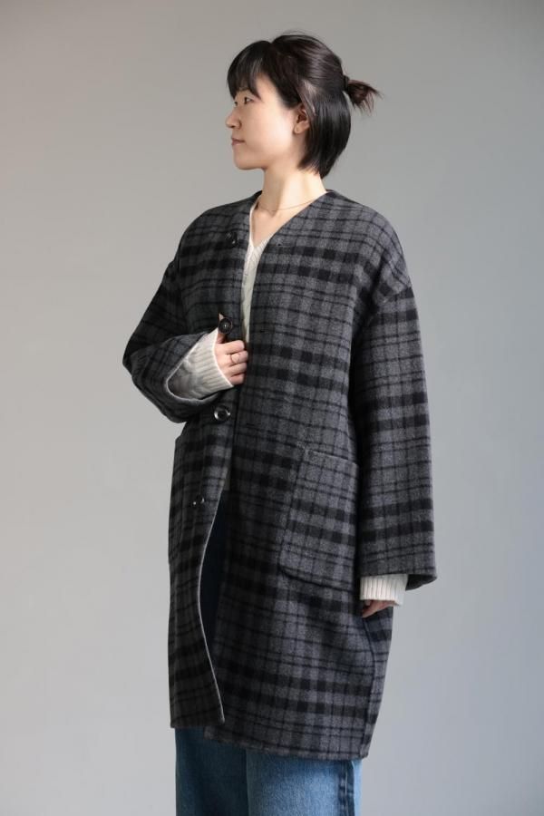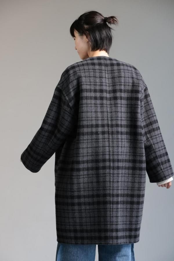 1点1点、丁寧に縫製されたノーカラーのリバーコート。