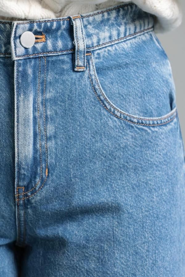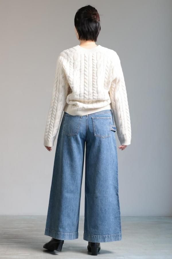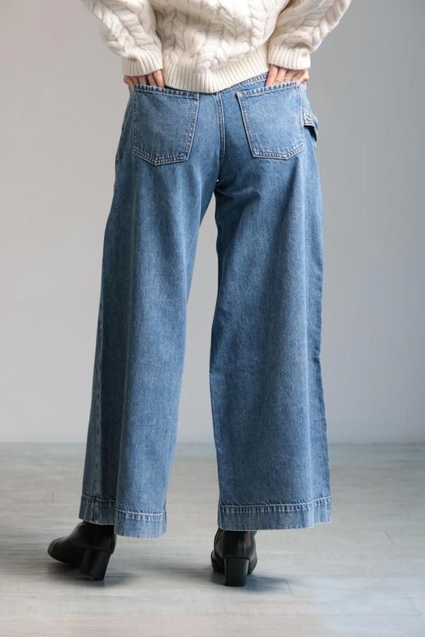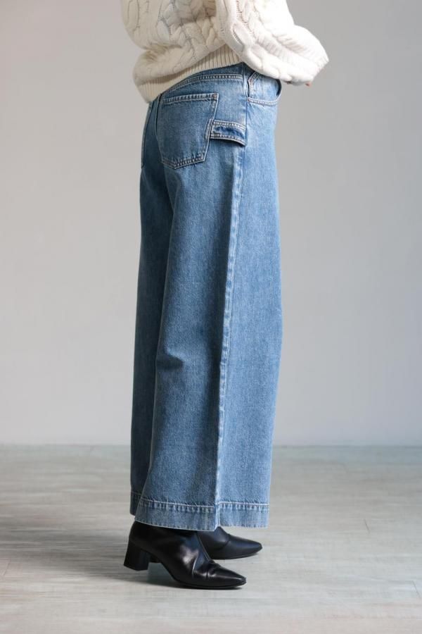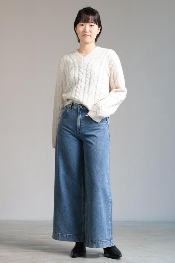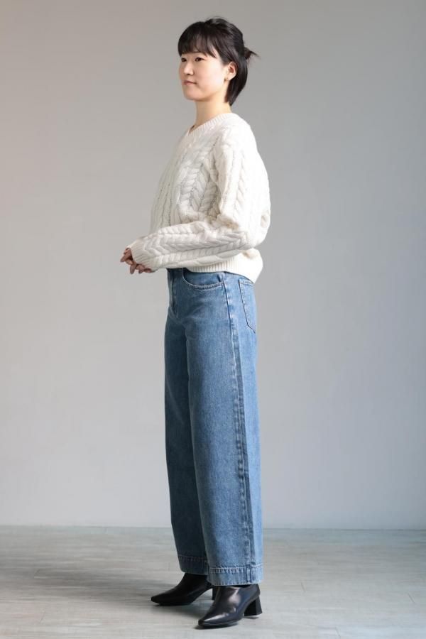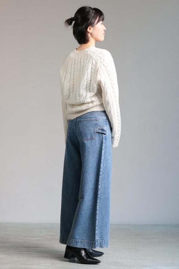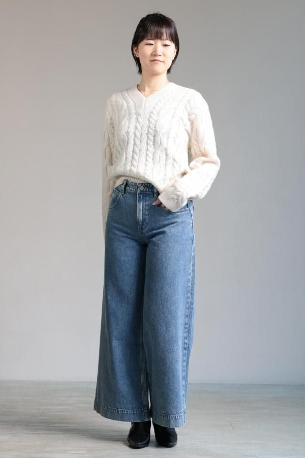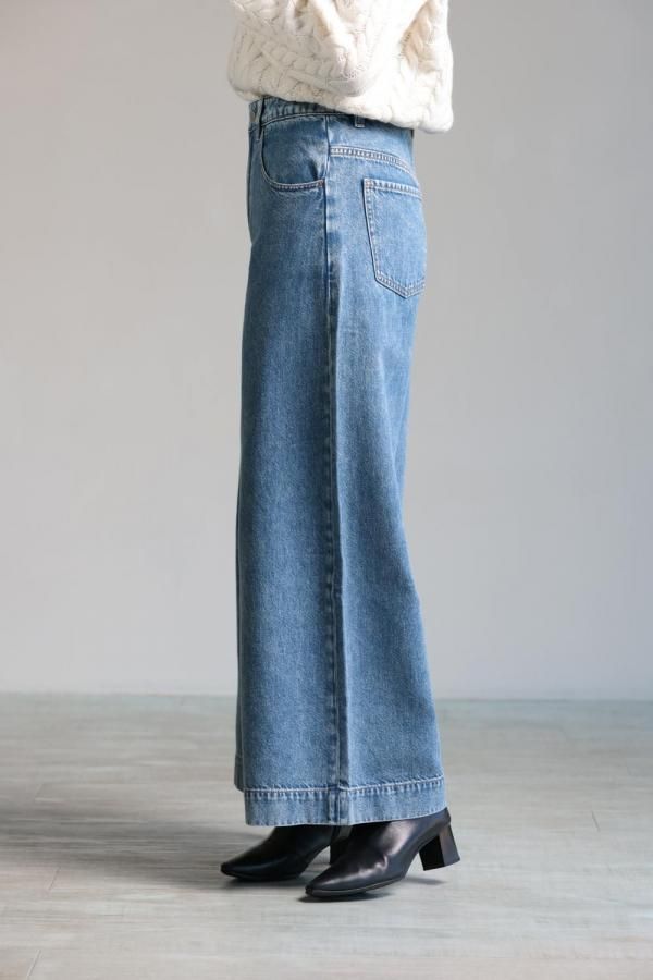 高めの折り返しがアクセントを添えるAラインシルエットのパンツ。