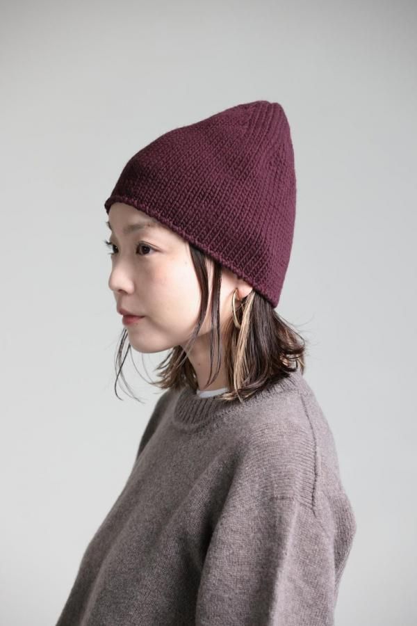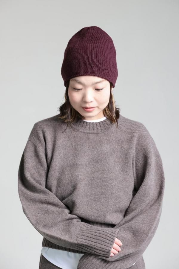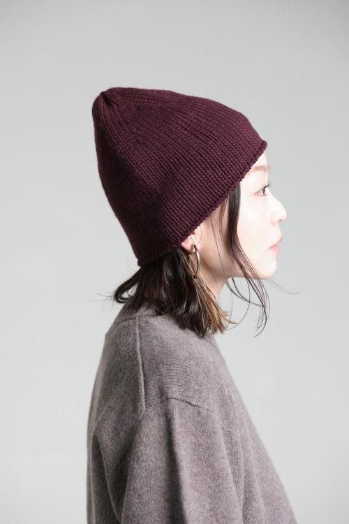 unfil(アンフィル) french merino felt yarn chuncky-knit beanie burgundy
