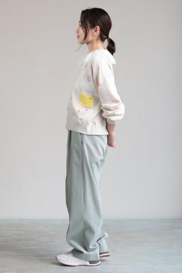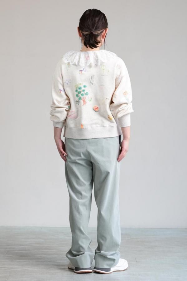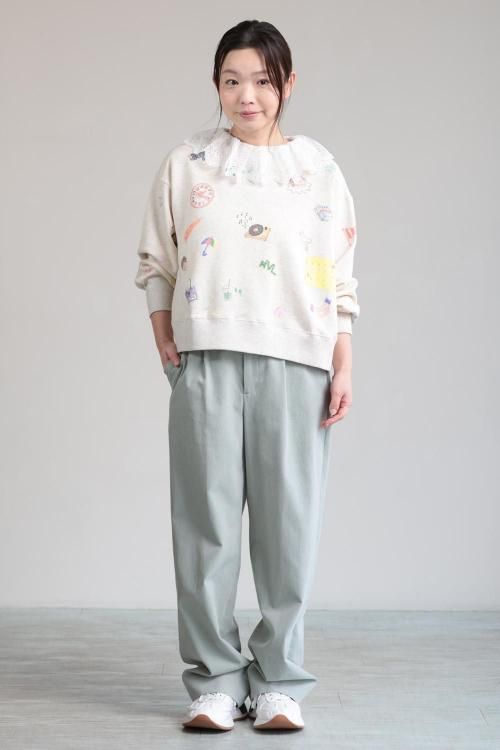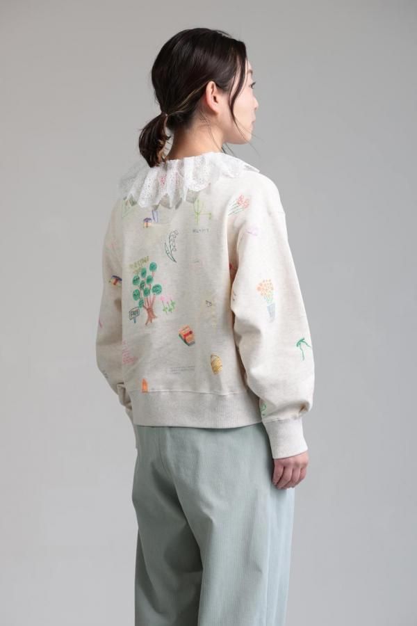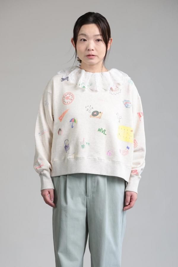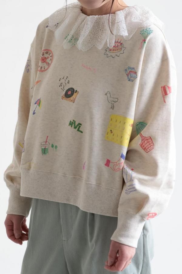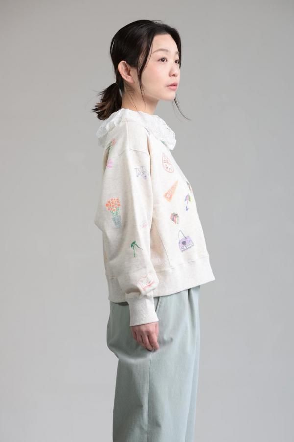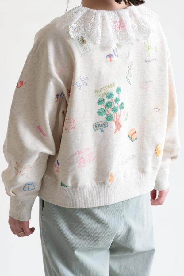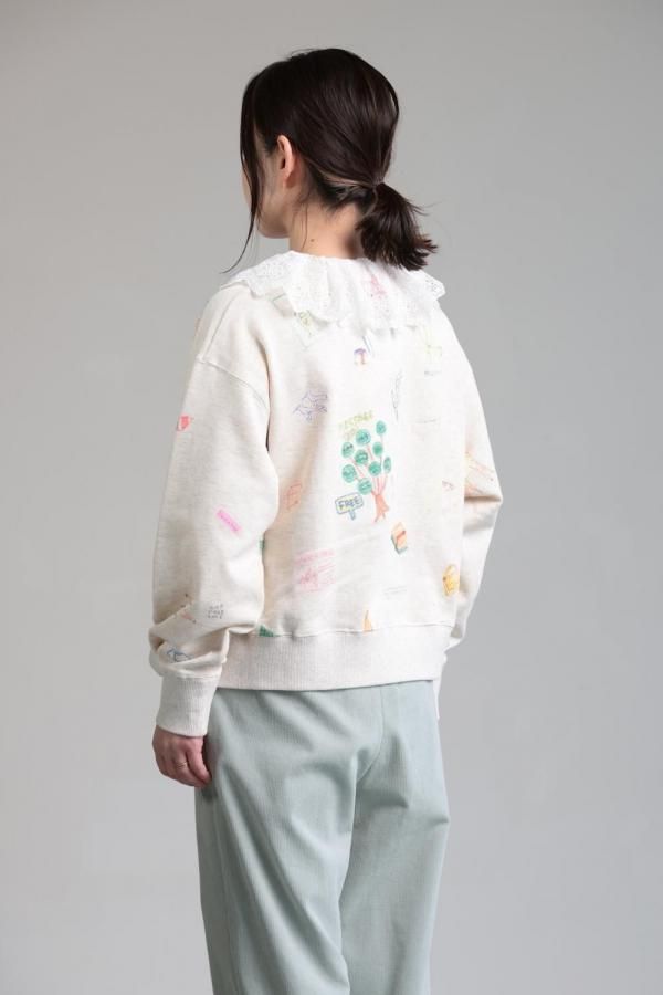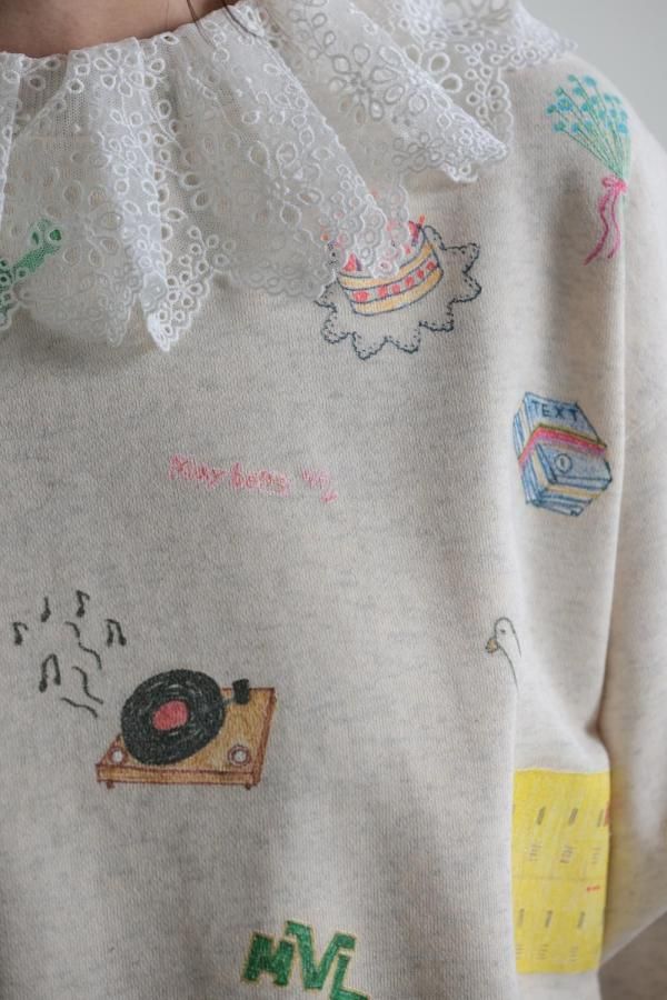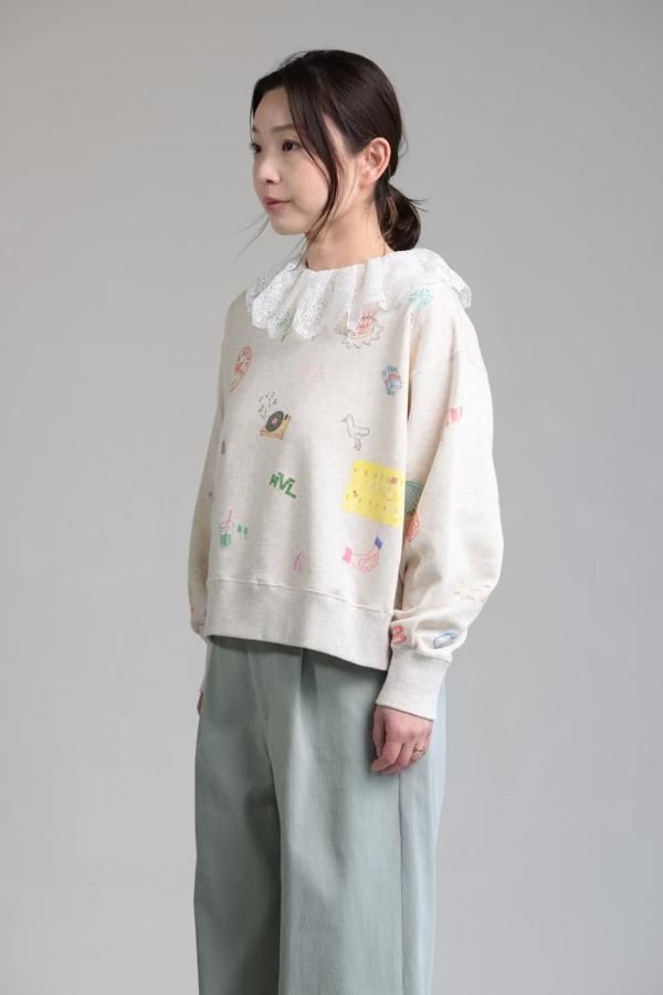MUVEIL(ミュベール) レース襟付き落書きプリントスウェットプルオーバー beige